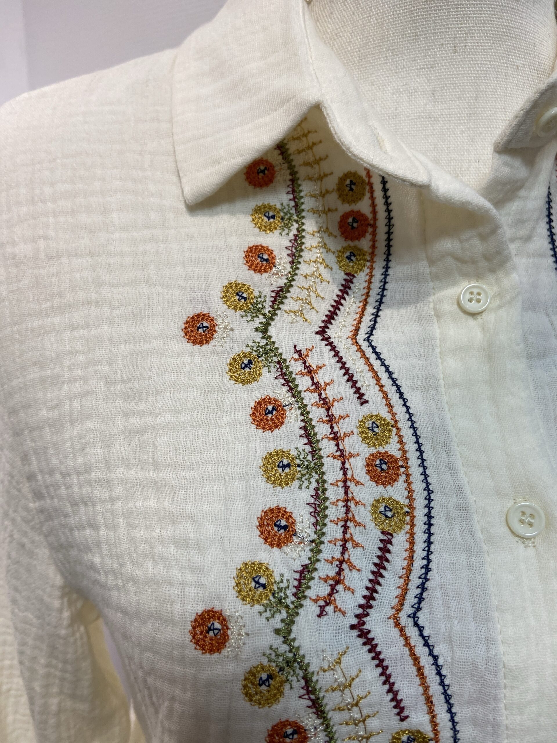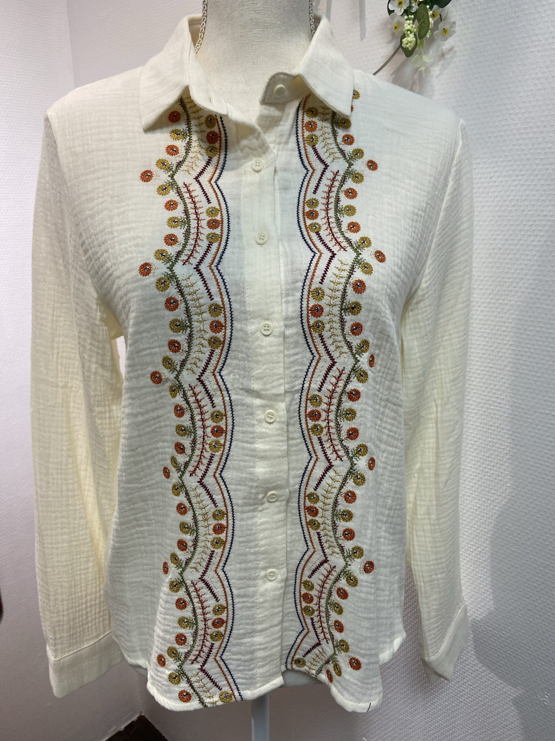 Chemise en coton beige avec broderie sur tout le devant