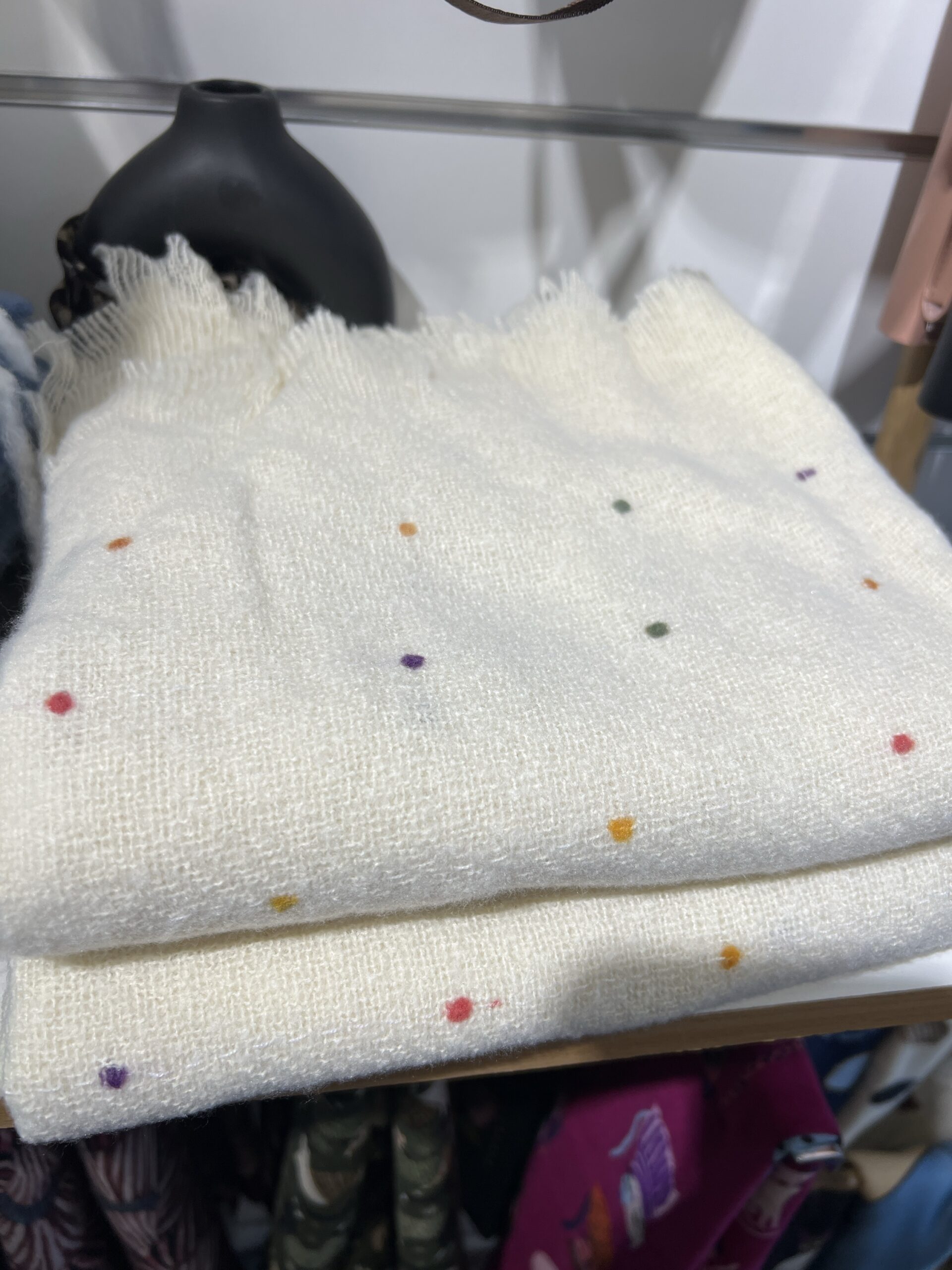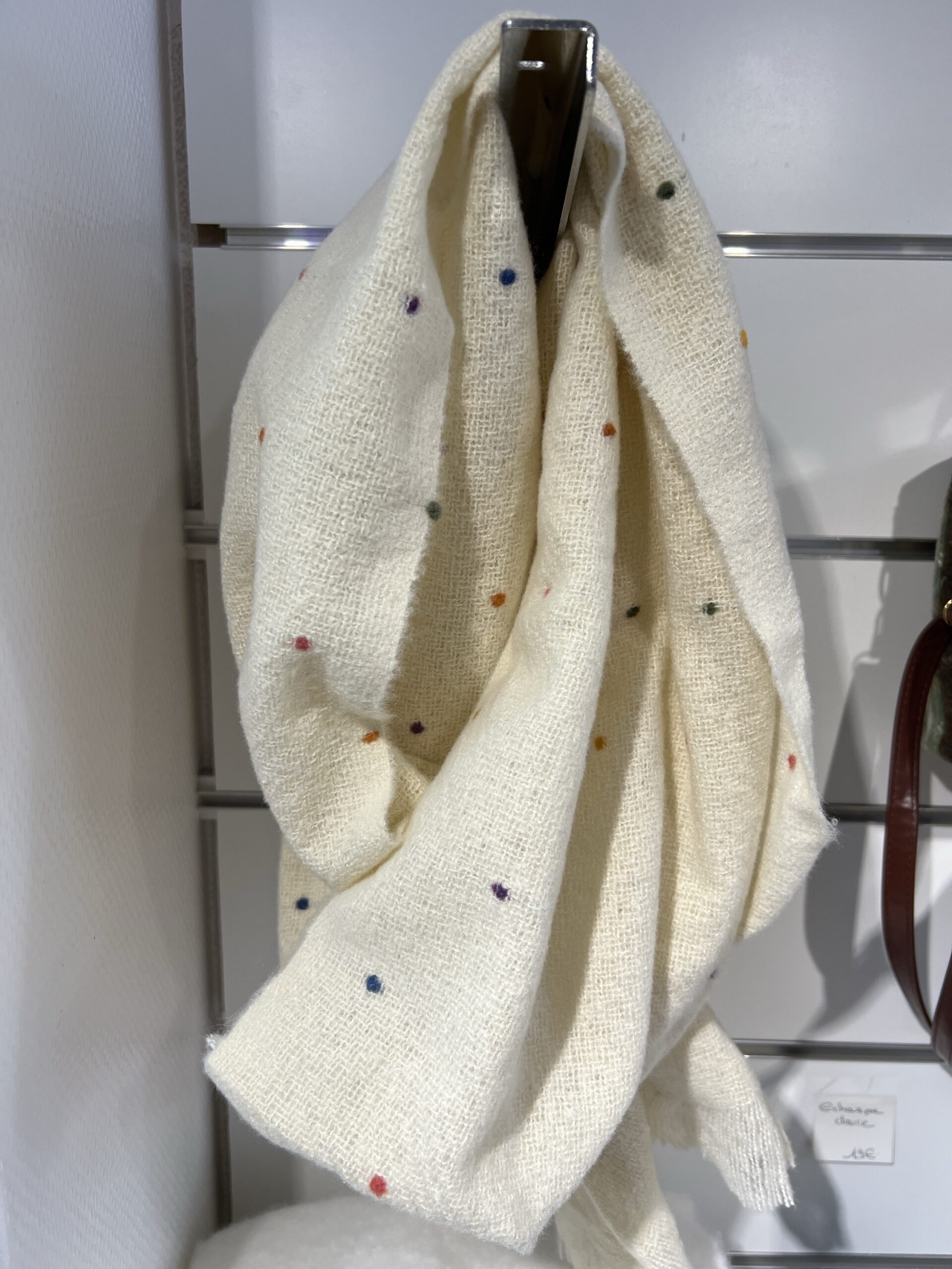 Écharpe douce beige avec des motifs multicolores très léger