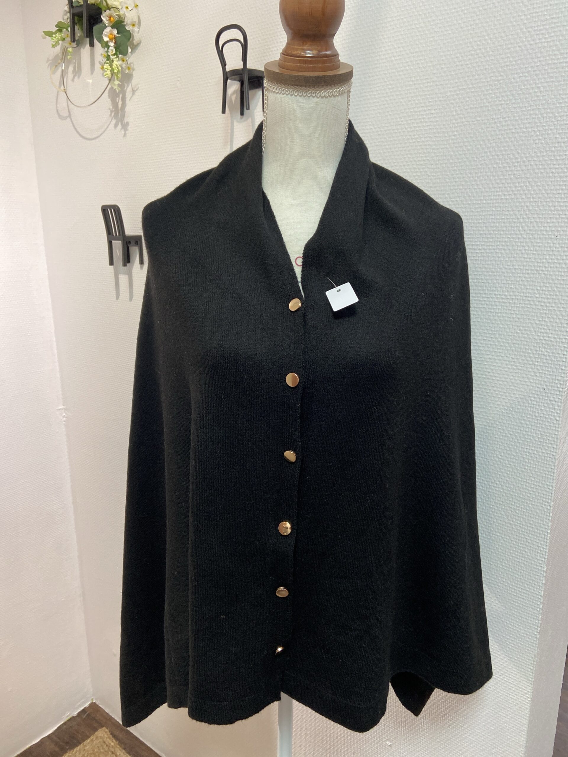 Joli poncho noir en acrylique